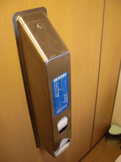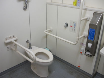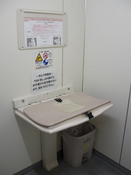また多目的トイレ内にはオムツ台とそれ専用と思われるゴミ箱も設置されているようですね。