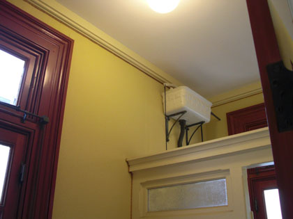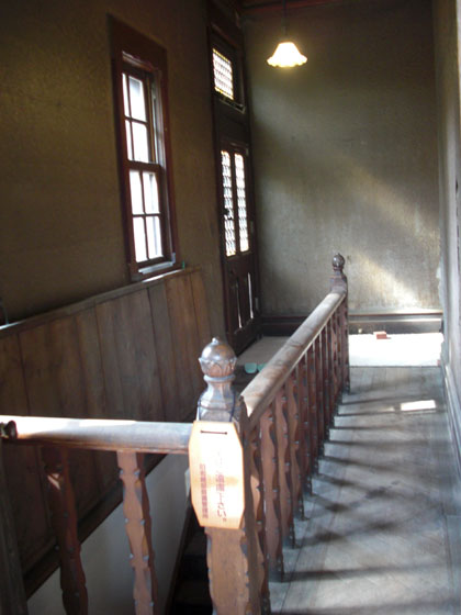 階段を上がり、廊下を西に進んだ小階段の先にあります。