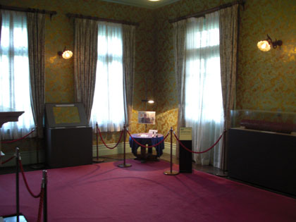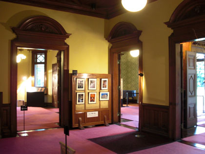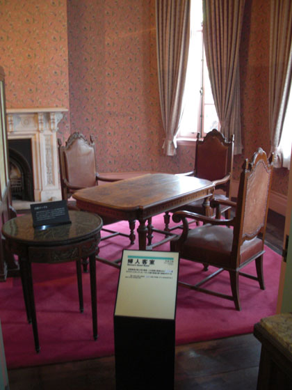 この部屋ではビデオにより旧岩崎邸庭園の歴史を紹介していますが、ある意味来館者の休憩スペースを兼ねています。