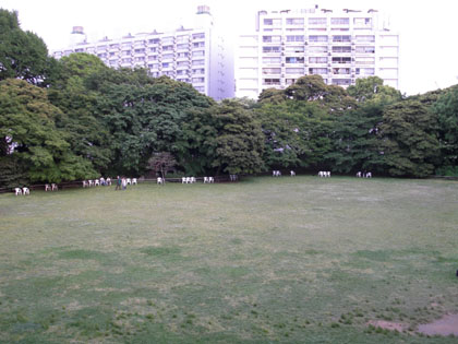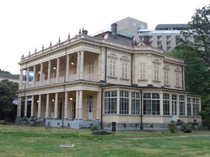 奥に建つマンションの敷地も元々は岩崎邸の物でした。