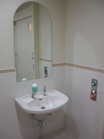 装備の充実度は・・・まぁ置いておいて、前日に見聞したしました地下1階にも、ここ4階と同じ程度の多目的トイレが欲しいところですね。