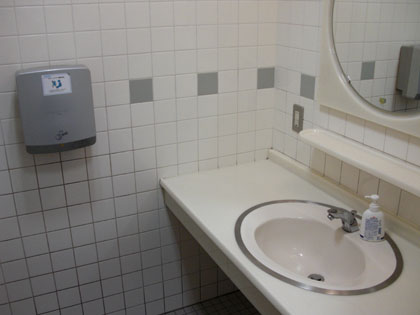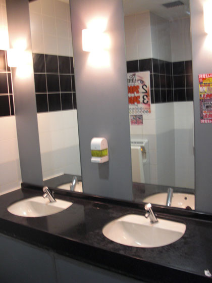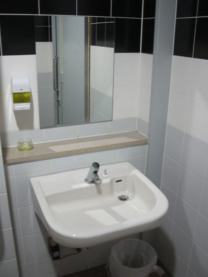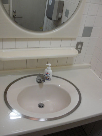 センサー式の自動水栓を持つ洗面台のさらに隣に、