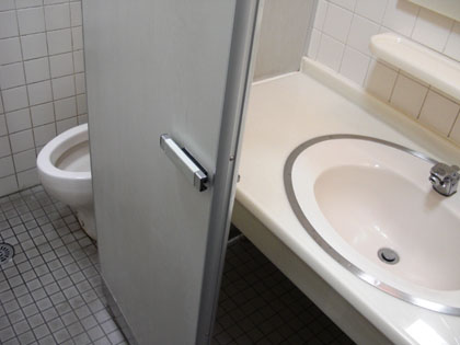 こういった店舗のトイレはやはりお店の外に設置されています。