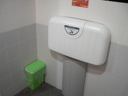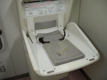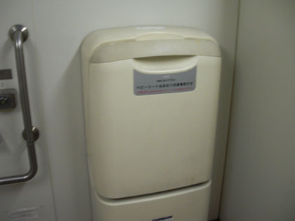 オムツ台は備えていますが、オムツを捨てるためのゴミ箱はないのでその利用に注意が必要ですが、まぁその前にオムツ台もキレイにして欲しいものですね。