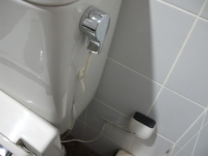 壁にあるシャワートイレ操作パネルの「流す」ボタンと連動し、ガチャリとレバーが動きます。