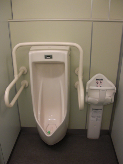 ここの男性用トイレにおける小用の数は1つだけですが、小用便器のすぐ隣にベビーキープが設置されています。