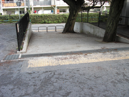 この公園は道路から一段高い場所にあります。