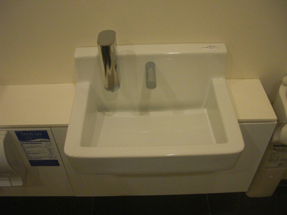 多目的トイレの洗面台も自動水栓となっております。