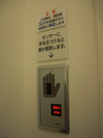 ドア左手の壁にある手かざし式のセンサーパネルのほか、