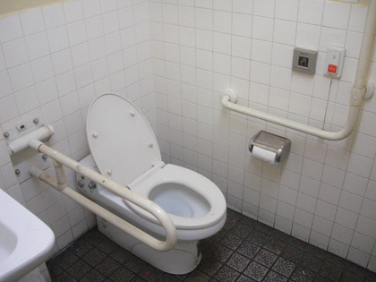 多目的トイレには、オストメイト専用便器も有り。